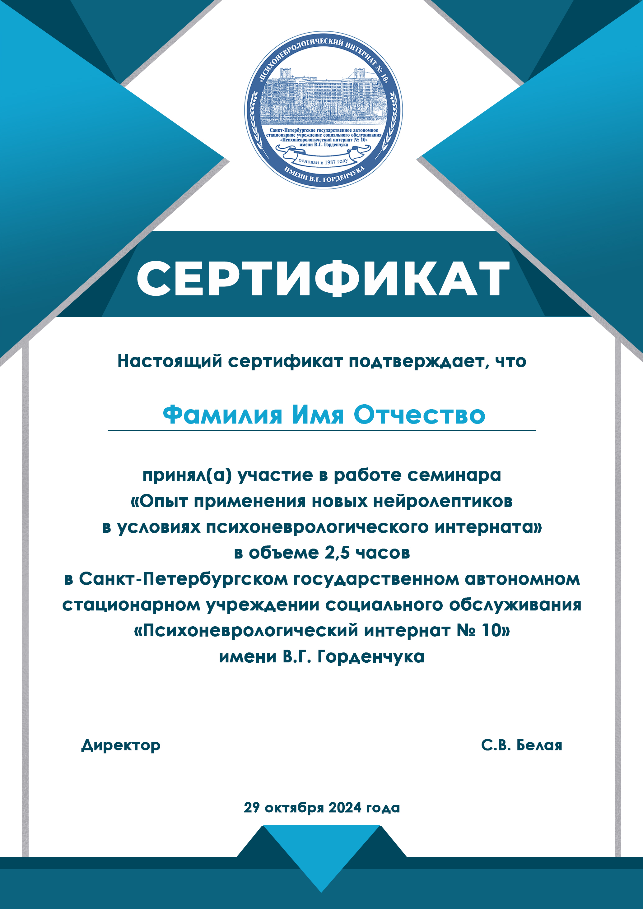 Место проведения: Санкт-Петербургское государственное автономное стационарное учреждение социального обслуживания «Психоневрологический интернат № 10» имени В. Г. Горденчука